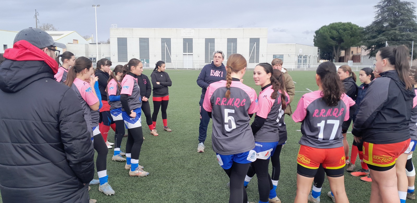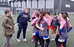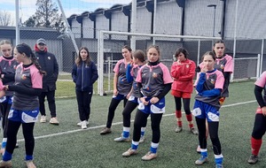 Samedi 8 février, les minimettes du RNQ (rassemblement Bretenoux-Biars-Vayrac, Saint-Céré, Gramat) se déplaçaient en banlieue toulousaine dans le cadre de la deuxième phase du challenge Occitan. L'équipe de Décazeville/Capdenac étant forfaite, nos deux équipes de F15 affrontaient l'équipe du rassemblement NET/Blagnac sur le terrain synthétique de l'Union-Launaguet. Les jeunes féminines du Haut Quercy ont remporté sans beaucoup de difficultés, ces deux rencontres, l'équipe toulousaine étant composée de beaucoup de jeunes débutantes. Au delà des scores, c'est la manière qui est à retenir de ces oppositions. Les minimettes du RNQ ont en effet montré qu'elles maîtrisaient les bases de ce jeu collectif et surtout qu'elles jouaient la même partition ce qui est de bon augure pour l'avenir de ce groupe de jeunes rugbywomen. Beaucoup de satisfactions pour les jeunes et pour les encadrants Anaïs, Géraldine, Aubin et Pierre-Louis.