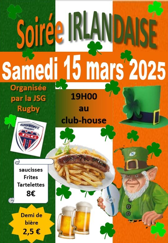 Devant le succès de cette animation l'année dernière, l'Ecole et les séniors du club de Rugby de Gramat vous invitent à fêter la Saint Patrick